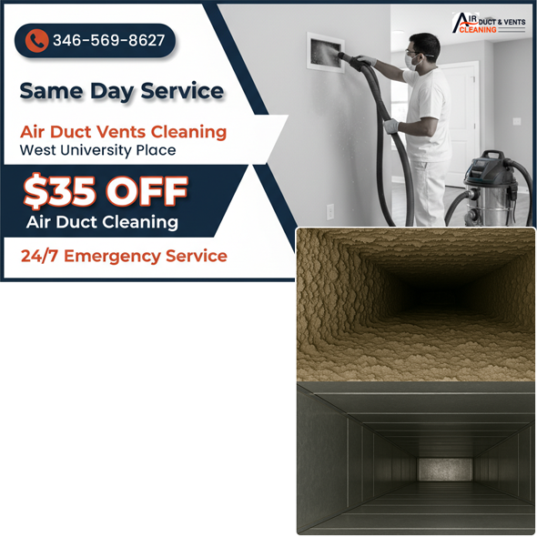 Schedule your air duct cleaning appointment today with West University Place TX Air Duct Vents — enjoy cleaner air, same-day service, and a free estimate!